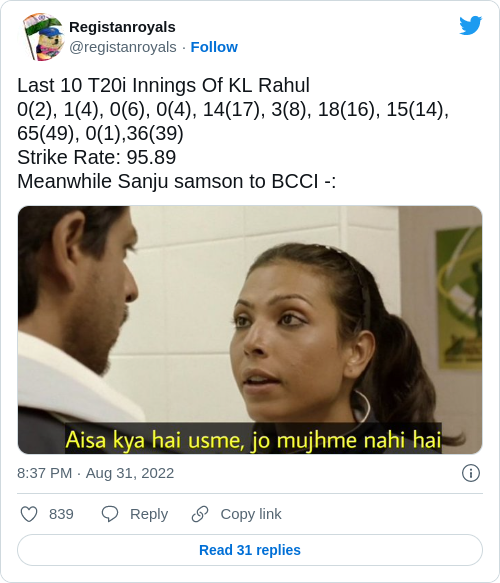 KL Rahul slammed by memers, going through a bad form and played a slow innings in 2nd T20I against Hong kong.