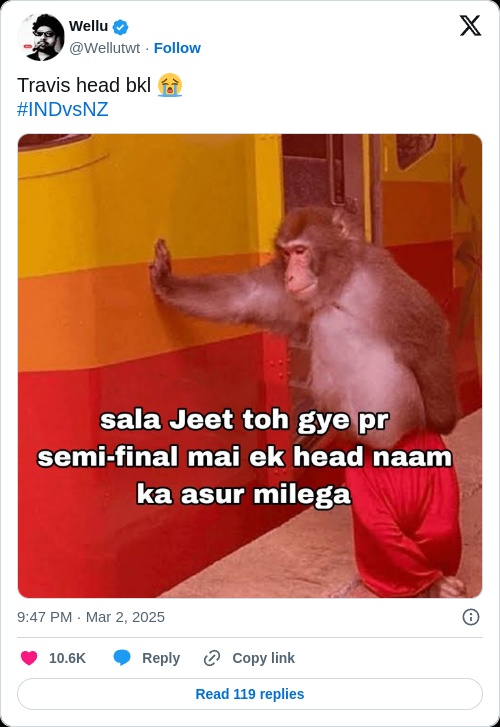 We won but then I remembered Travis Head is waiting for Rohit Sharma in the semis finals 🥹🥹 pic.twitter.com/1uHqSfYz52
