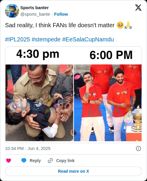 Heart breaking visuals from #RCB victory parade 🥹😢